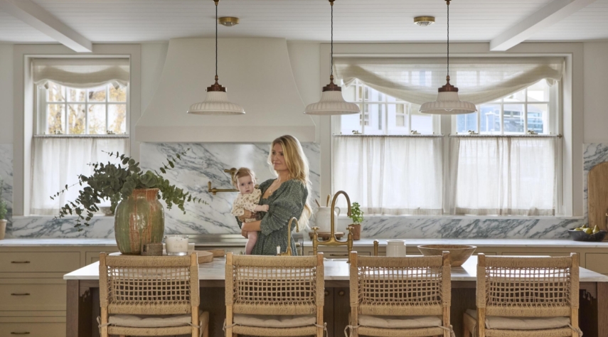 BRIEF: Our clients, a young couple with three small children, commissioned House Nine Design and Barr Kitchens to create a connected family kitchen space for their new-build coastal retreat. The brief was for a warm, layered aesthetic — leaning as heavily on the architectural and cabinetry detailing as on the layout and functionality of the spaces. A walk-in larder room with glazed double doors and a separate utility room were essentials, as was a kitchen island with plenty of hidden storage and ample space for home projects and weekend entertaining.